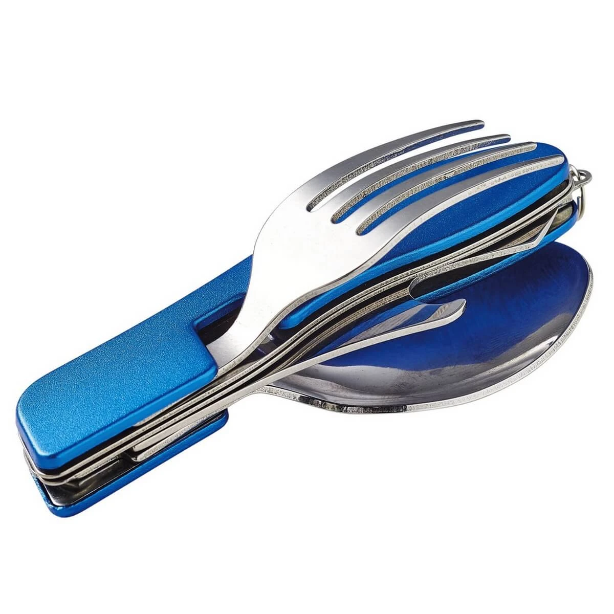 Couverts de voyage particulièrement indiqués pour les campeurs, voyageurs, pêcheurs, festivaliers en week-end ou touring. Design robuste, amovible, facile utiliser et facile à ranger.